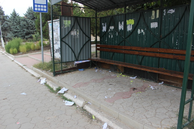Сегодня ночью неизвестные содрали афишу со стенда, который установлен перед зданием ЕКЦ, а также засорили находящуюся рядом остановку.