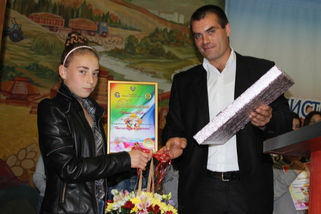 М.Сыртмач, вручая гран-при победительнице конкурса Марии Димитровой, учащейся 6 кл. гимназии им.П.Казмалы, от имени председателя района и аппарата райадминистарции выразил огромную благодарность народным мастерам Асссоциации, организовавшим данный конкурс и этот праздник вручения ребятам заслуженных наград.