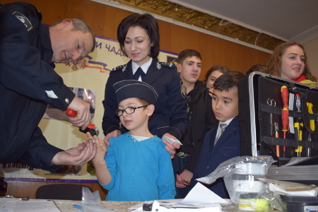 Оживленный интерес у учащихся вызвала процедура дактилоскопирования, а также демонстрация огнестрельного оружия и специальных средств защиты.