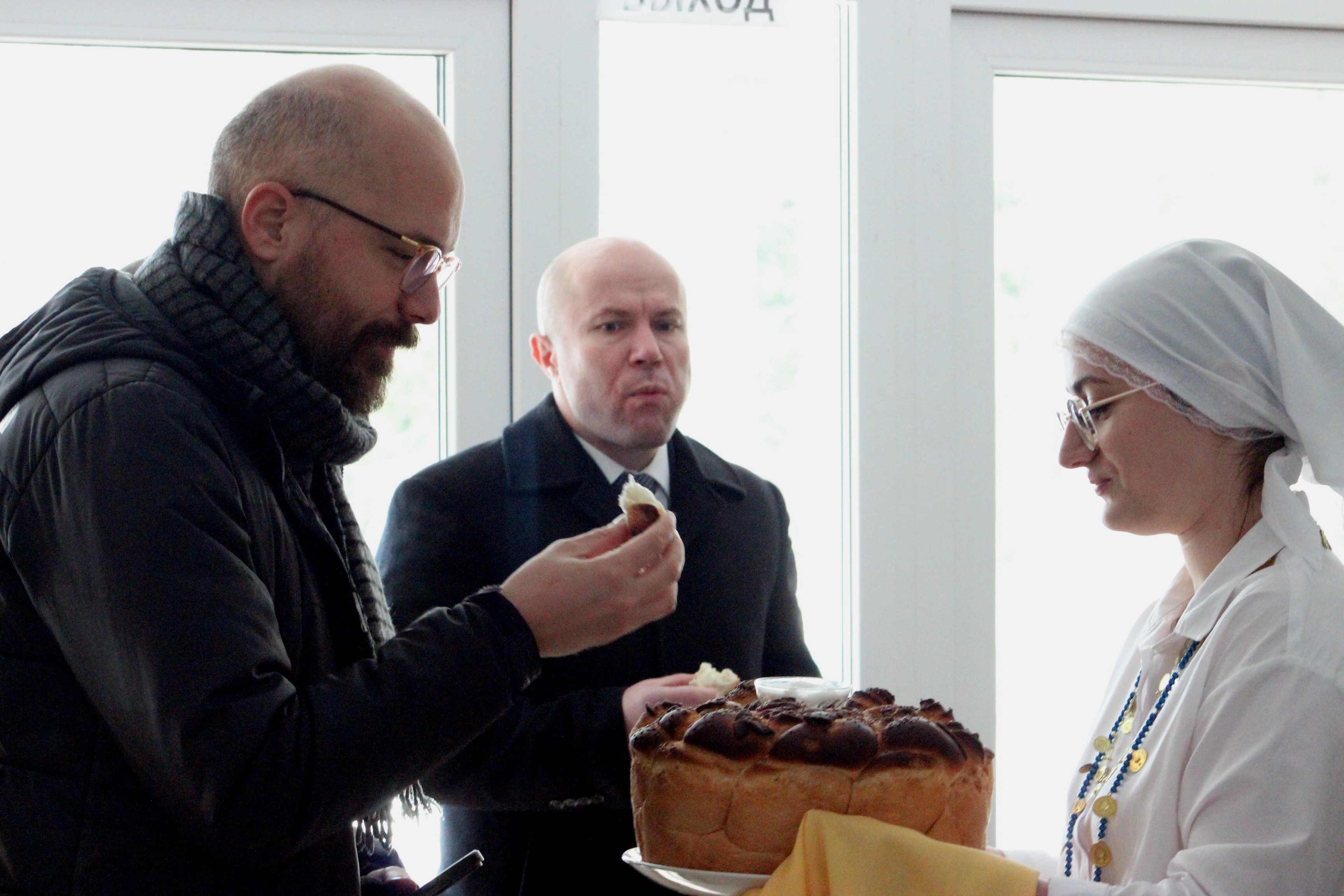 Гостей встречали хлебом-солью учащиеся в национальных костюмах, руководство лицея и начальник Главного управления образования Гагаузии Наталия Кристева.