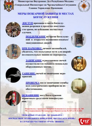 Генеральный инспекторат по чрезвычайным ситуациям РМ напоминает о мерах пожарной защиты в местах богослужения.