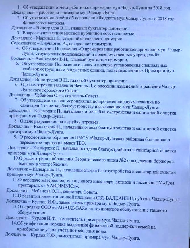 На заседании Совета Чадыр-Лунги, которое состоялось 19 марта, был рассмотрен ряд важных для муниципия вопросов, по ним приняты соответствующие решения, а также представлен подробный финансовый отчет об исполнении бюджета за 2018 год.