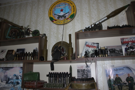 В мини-музее представлены форма, образцы оружия, снарядов, радиоприемники, вымпелы и знамена с гербом, документы, материальные свидетельства той войны и многое другое.