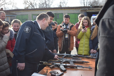 Оживленный интерес у учащихся вызвала процедура дактилоскопирования, а также демонстрация огнестрельного оружия и специальных средств защиты.