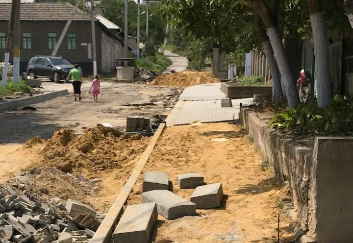 Работы по ремонту дорожного полотна продолжаются на улице Чакира. Здесь также обустраиваются тротуары и система по отводу ливневых вод. Как сообщил примар населенного пункта, обустройство нового тротуара на стадии завершения, на данный момент идёт подготовка основания для укладки брусчатки.