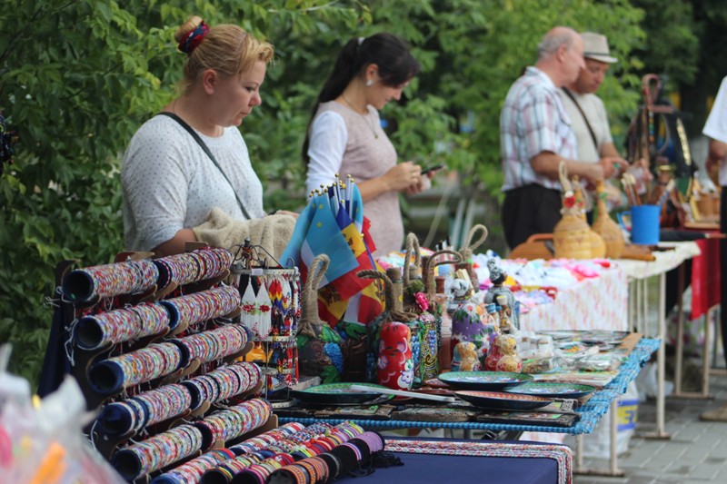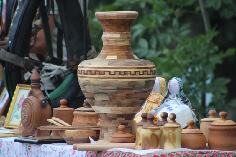Неподалеку от концертной площадки разместилась выставка Ассоциации народных мастеров Гагаузии, на которой были представлены оригинальные изделия из дерева и кожи, бижутерия ручной работы и многое другое.