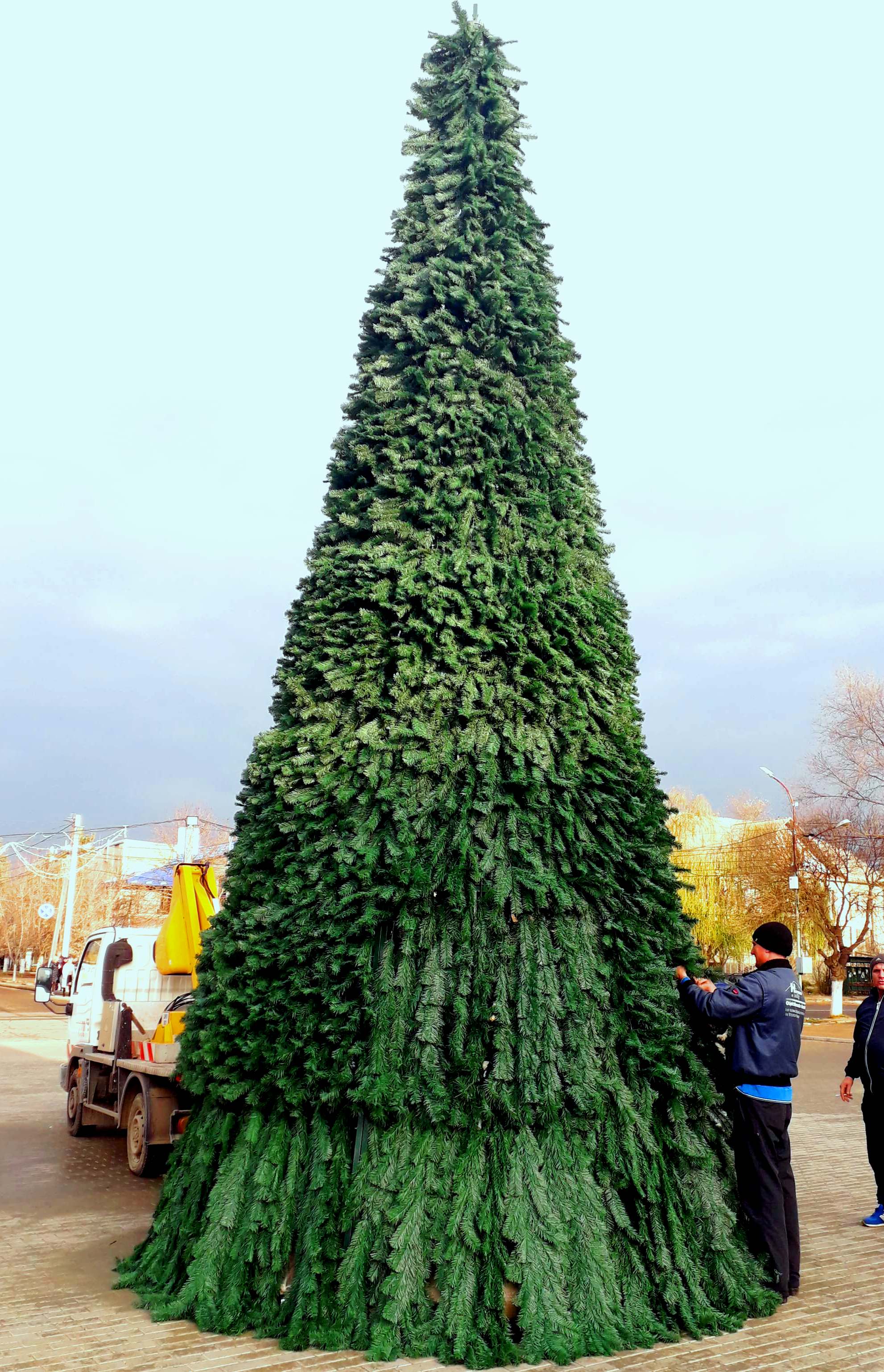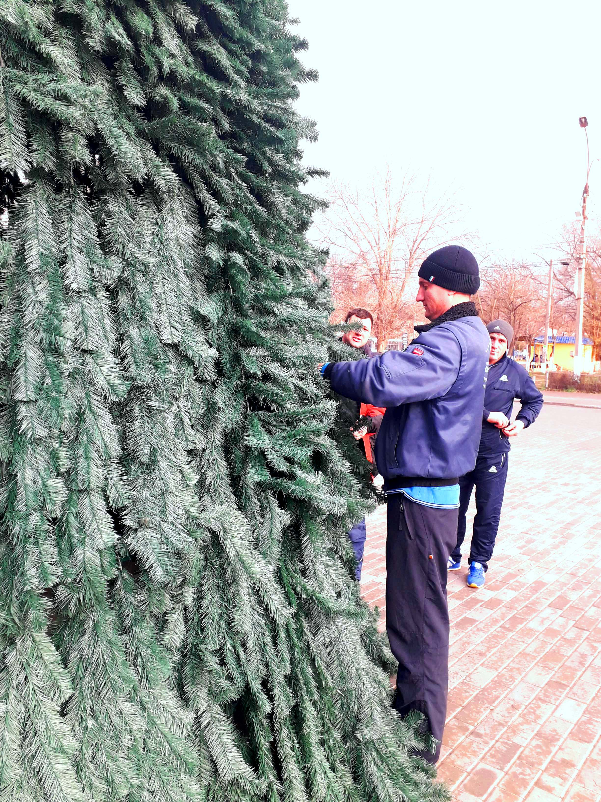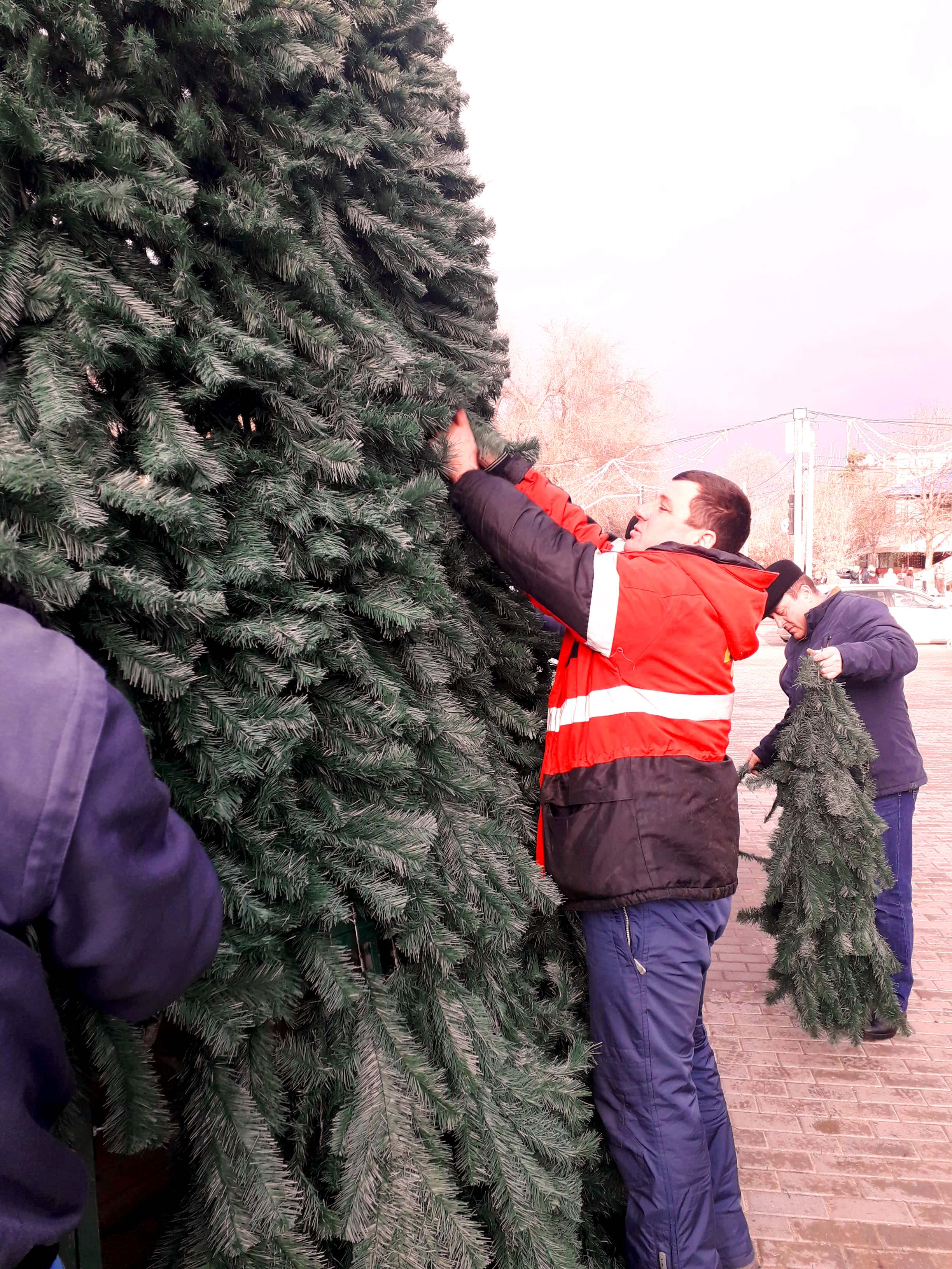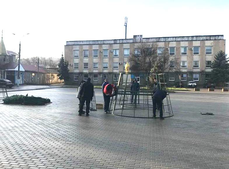 На центральной площади Чадыр-Лунги сегодня, 10 декабря, начались работы по установке 9-ти метровой искусственной ели. Уже установлен каркас, на данный момент на него крепятся зеленые веточки.