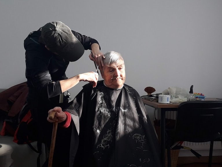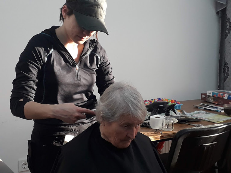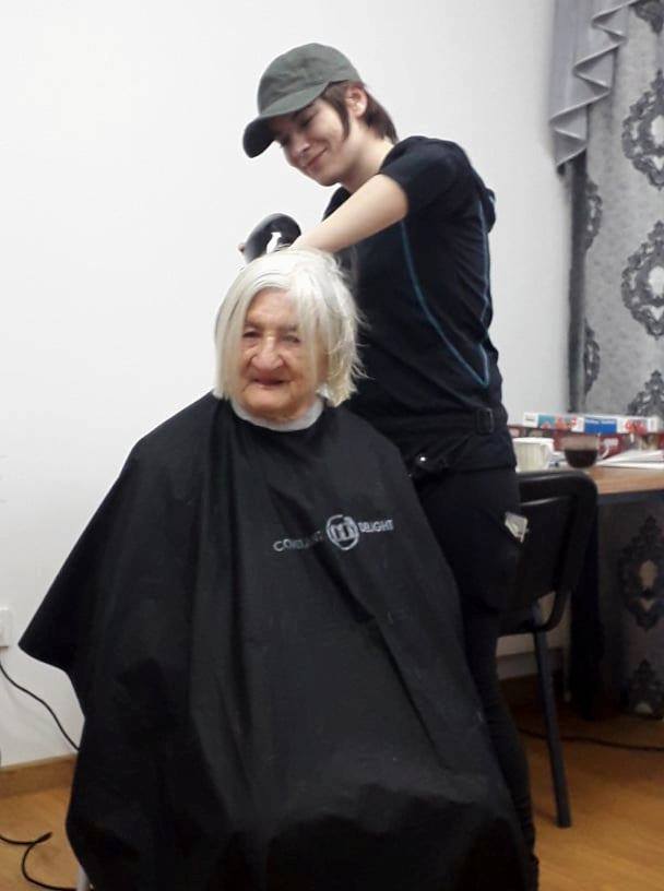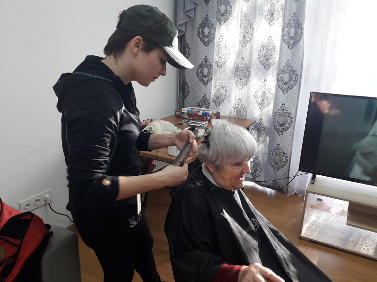 «Я здесь совсем недавно, но очень рада, что попала сюда. Здесь у нас есть все необходимое, а кормят, как в детском саду - четыре раза в день. А теперь вот и стригут бесплатно», - говорит тетя Алла.
