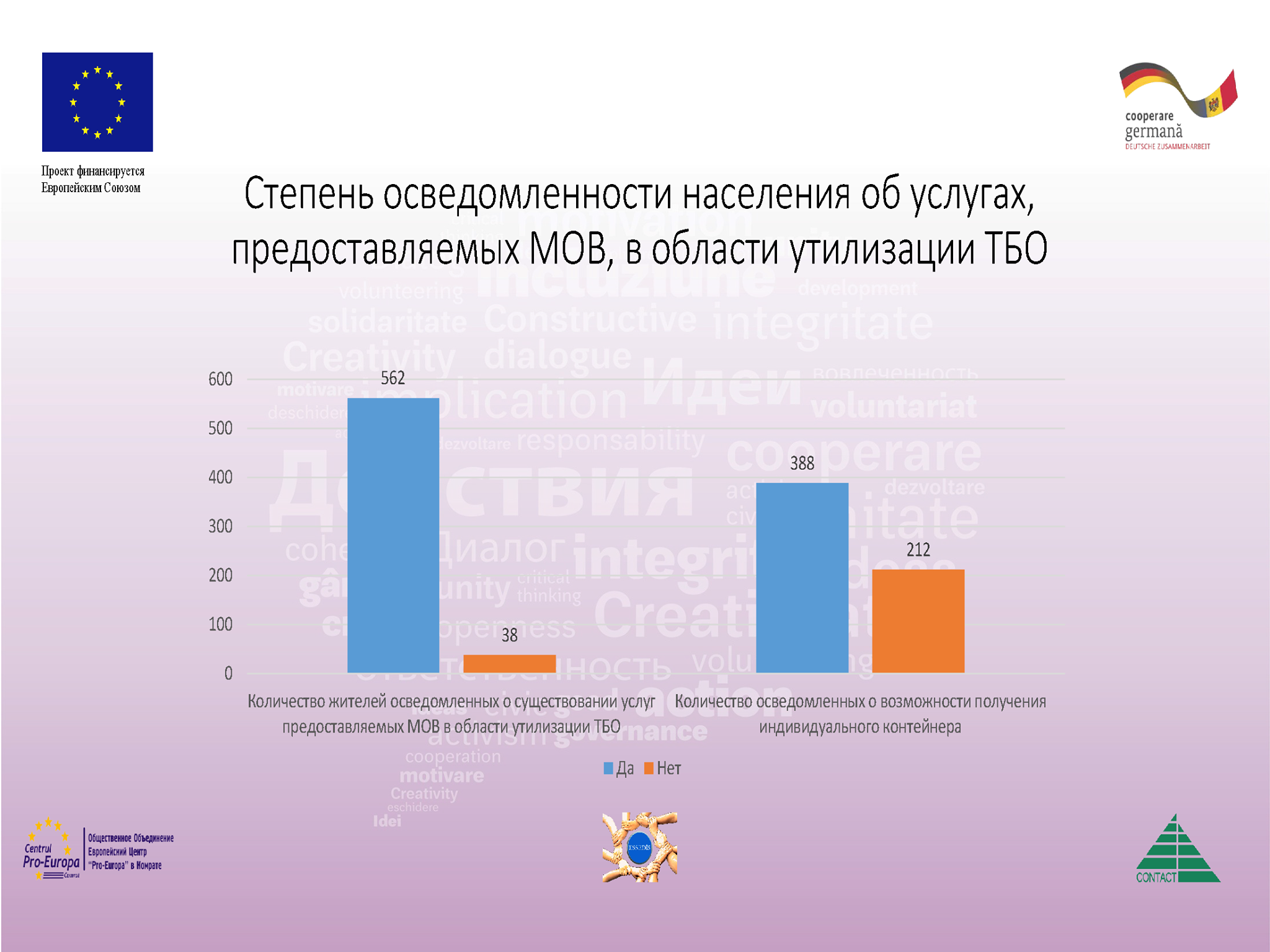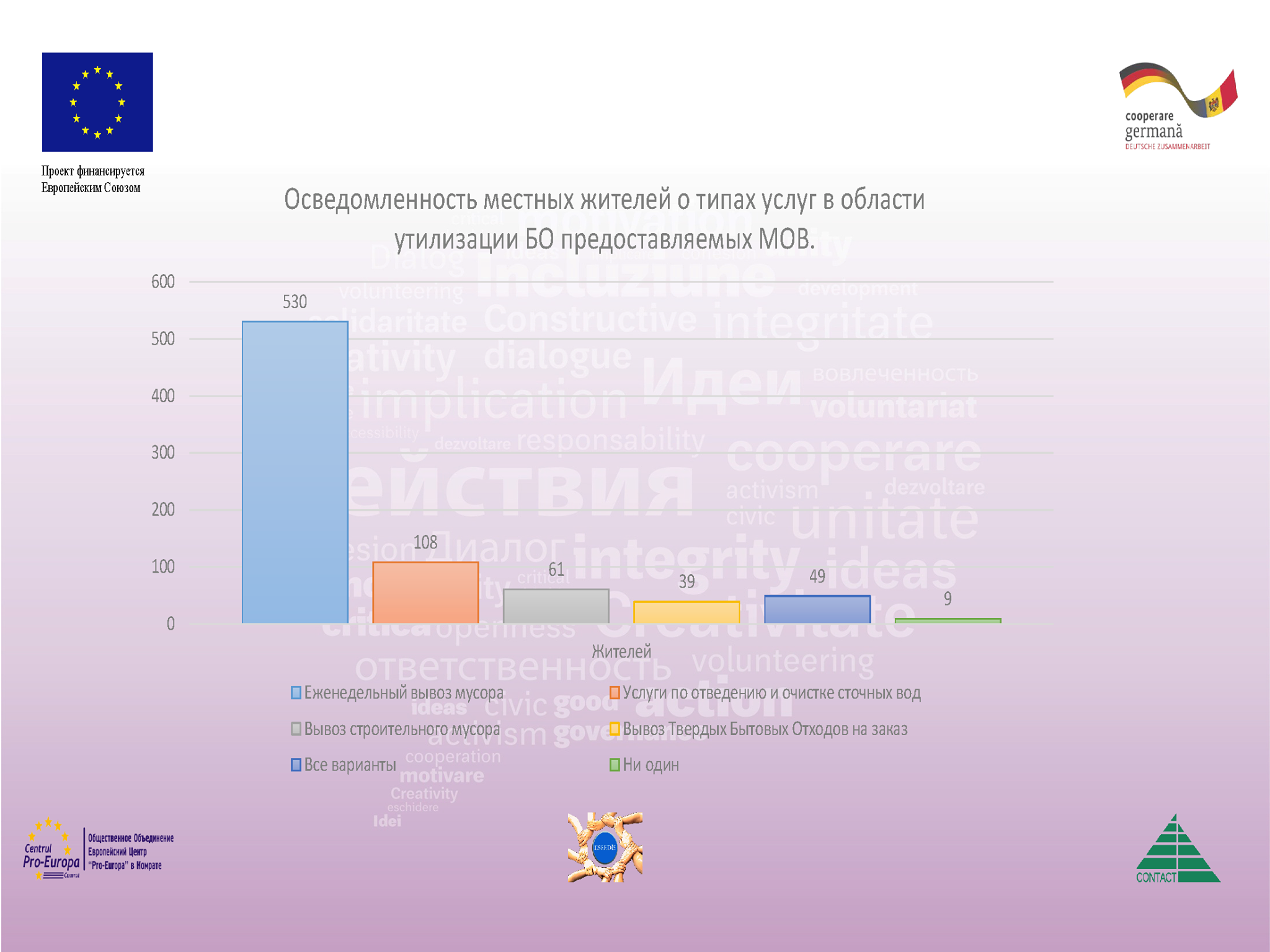 - 1. Низкая осведомленность об услугах, предоставляемых примарией Чадыр-Лунга, в области утилизации твердо-бытовых отходов.